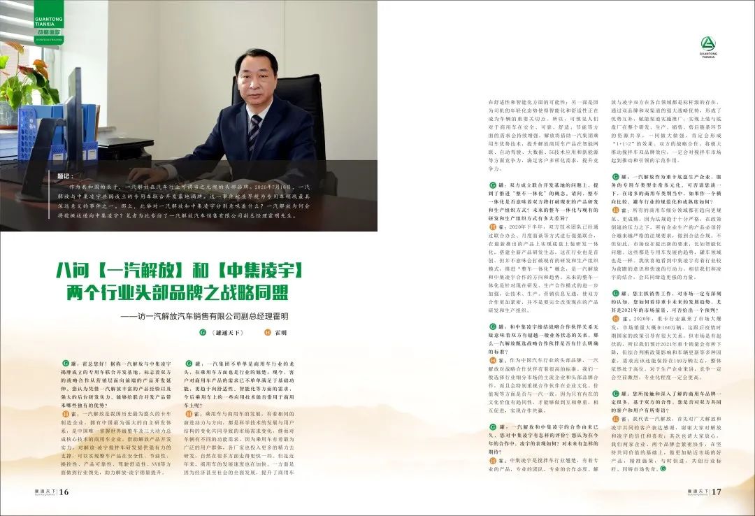 貫穿整個(gè)2020年的是解放凌宇深化戰(zhàn)略合作的徐徐開展。一汽解放與中集凌宇作為各自領(lǐng)域的領(lǐng)軍企業(yè),兩大企業(yè)珠聯(lián)璧合。此舉對一汽解放與中集凌宇分別意味著什么?解放為何將橄欖枝遞向中集凌宇?為此專訪了一汽解放汽車銷售有限公司副總經(jīng)理霍明先生。