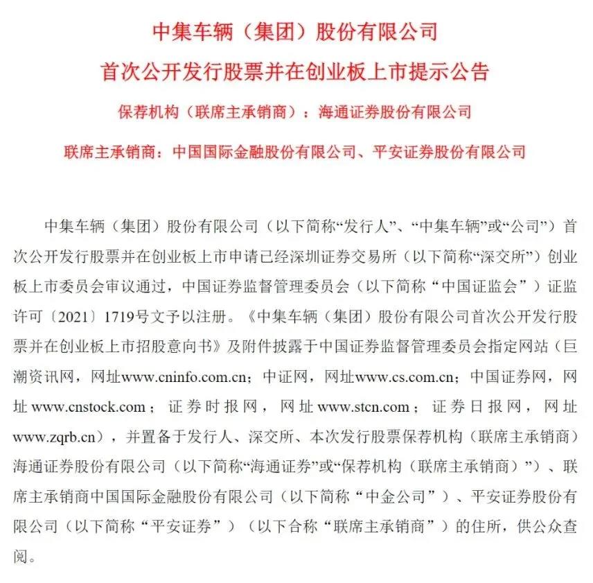 【集團(tuán)新聞】中集車輛A股創(chuàng)業(yè)板IPO 正式進(jìn)入詢價(jià)與發(fā)行階段