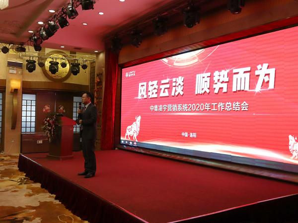 隨后,公司副總經(jīng)理兼營銷公司總經(jīng)理胡柏林做工程車營銷工作總結(jié)報(bào)告,胡總的報(bào)告分為回顧和展望兩大部分,通過行業(yè)情況、凌宇業(yè)績、市場預(yù)測、目標(biāo)分解、對手分析、營銷戰(zhàn)略、關(guān)鍵舉措等幾個(gè)方面進(jìn)行了系統(tǒng)的總結(jié)和戰(zhàn)略部署。胡總指出,2020年,營銷公司圓滿完成了公司下達(dá)的各項(xiàng)任務(wù),取得了傲人的成績,同時(shí)公司的產(chǎn)品、產(chǎn)線、管理、組織都在進(jìn)行升級,為今年的營銷工作創(chuàng)造了良好的條件;2021年,大家按照公司的部署順勢而為,我們有信心做到風(fēng)輕云淡、牛氣沖天!