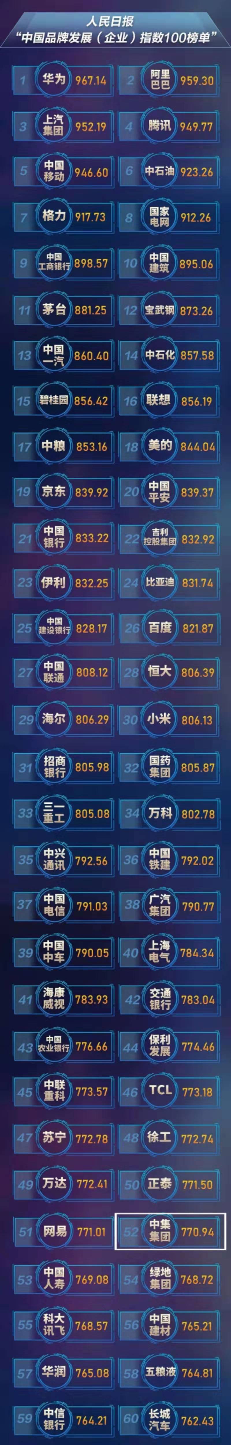 據(jù)悉,人民日報“*品牌發(fā)展指數(shù)”是以推動*經(jīng)濟(jì)高質(zhì)量發(fā)展為基本出發(fā)點,從促進(jìn)品牌經(jīng)濟(jì)的維度對*企業(yè)乃至國家競爭力進(jìn)行的量化評價,是衡量社會美好生活的發(fā)展水平和高質(zhì)量發(fā)展的基本能力的綜合統(tǒng)計測度,既是反映*品牌經(jīng)濟(jì)發(fā)展的宏觀趨勢性指數(shù),也是反映*品牌經(jīng)濟(jì)發(fā)展微觀主體競爭能力的結(jié)構(gòu)性指數(shù)。 人民日報“*品牌發(fā)展指數(shù)”通過建立宏觀指數(shù)、企業(yè)指數(shù)和診斷體系三位一體的指數(shù)系統(tǒng),改變了一般意義上的指數(shù)重宏觀趨勢輕微觀指導(dǎo)的狀況,在凸顯宏觀經(jīng)濟(jì)分析價值的同時,重視對微觀經(jīng)濟(jì)主題的價值和問題診斷。 其中,企業(yè)指數(shù)基準(zhǔn)日定為2018年11月1日至2019年10月31日,首期發(fā)布100個企業(yè)品牌指數(shù)數(shù)值。針對企業(yè)“創(chuàng)新、綜合實力、市場認(rèn)同、盈利能力、社會責(zé)任和用戶美譽(yù)”六個維度的結(jié)果性指標(biāo)對企業(yè)品牌創(chuàng)建能力進(jìn)行評價。被收錄的21442家企業(yè)樣本,根據(jù)人民日報“*品牌發(fā)展(企業(yè))指數(shù)100榜單”的評價準(zhǔn)則進(jìn)行評選,結(jié)果,中集入選*品牌發(fā)展指數(shù)企業(yè)榜第52位。 中集是的物流裝備和能源裝備供應(yīng)商,自1980年1月在深圳創(chuàng)立以來,始終堅持市場化和全球化運營,從一家集裝箱小廠發(fā)展成為如今擁有八大業(yè)務(wù)板塊,擁有20多個世界產(chǎn)品,年營收近千億的多元化跨國產(chǎn)業(yè)集團(tuán)。中集集團(tuán)旗下的道路運輸車輛業(yè)務(wù)、能源化工及食品裝備業(yè)務(wù)、空港及消防裝備業(yè)務(wù)等,已經(jīng)各自形成了初具規(guī)模的全球化布局,在*、歐洲、東南亞等國家和地區(qū)擁有40多家大、中型實體企業(yè),海外員工約有6000名。中集獨具特色的“全球運營、地方智慧”運營理念走向世界,在中外企業(yè)文化融合中發(fā)揮積極作用,為*企業(yè)的全球化發(fā)展做出了有益探索和積極貢獻(xiàn)。 以下為人民日報“*品牌發(fā)展(企業(yè))指數(shù)100榜單”詳情: