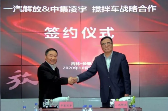 10月22日,洛陽(yáng)中集凌宇車輛有限公司與一汽解放汽車銷售有限公司,在長(zhǎng)春舉行了戰(zhàn)略合作簽約儀式,雙方將在攪拌車聯(lián)合研發(fā),聯(lián)合營(yíng)銷等多個(gè)業(yè)務(wù)環(huán)節(jié)深化合作,互利共贏,開疆拓土,共謀發(fā)展,并確定2021年攪拌車聯(lián)合營(yíng)銷目標(biāo)4000輛。